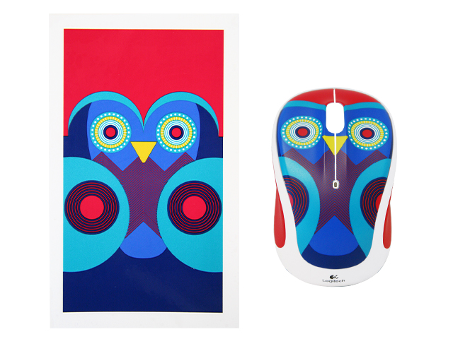成功案例:罗技猫头鹰图案无线鼠标卷标